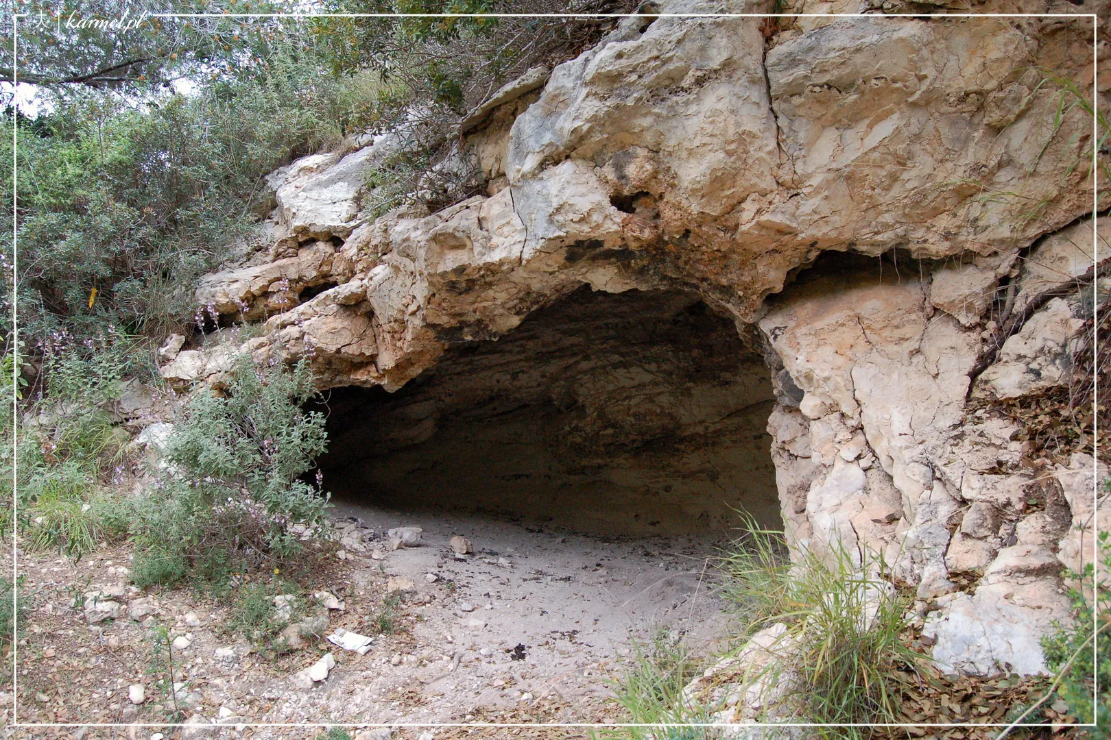Wzgórza Karmelu zawsze stały nieco na uboczu historii ludzkości, nie wdając się w wielkie i przełomowe wydarzenia. Nie były jednak miejscem całkowicie przez człowieka zapomnianym. W pradawnych czasach, od około 250 tys. do około 40 tys. lat temu, licznie występujące po zachodniej stronie Karmelu groty (el-Tabun, el-Wad, el-Kebarah), w tak zwanej Dolinie Grot, porośniętej wówczas olbrzymimi dębowymi lasami, zamieszkiwał człowiek neandertalski, pozostawiając po sobie ślady trudnego zmagania o przetrwanie. Człowiek neandertalski zajmował się łowiectwem, łączył się w większe grupy i wykonywał proste narzędzia z kamieni i kości. Znał ogień i zapewne chronił ciało przed zimnem skórami. Praktykował już obrzędowy pochówek zmarłych. Antropolodzy nazwali go Homo Carmelensis - "Człowiekiem z Karmelu".